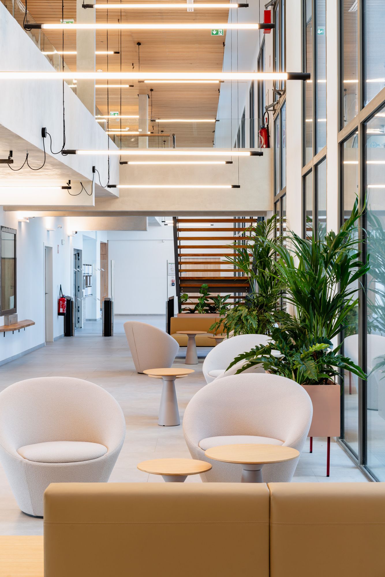 - Des espaces de vie et de communication (hall, restauration d'entreprise, showroom, salle de détente, place du village)
